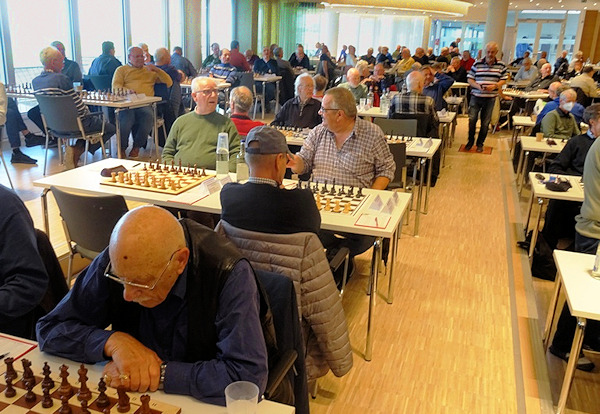 Vorab: Für dieses Turnier galt noch die traditionelle Altersgrenze von 60 Jahren - für einen 90jährigen auch schon ein stolzer Abstand. Unter den Teilnehmer:innen war auch "Jungsenior" Detlev Heinbuch - der Internationale Meister landete am Ende punktgleich mit Erich Krüger auf Rang 5 - 15. Der Setzlistenerste, Großmeister Hans-Joachim Hecht, holte einen halben Punkt weniger (Rang 16).