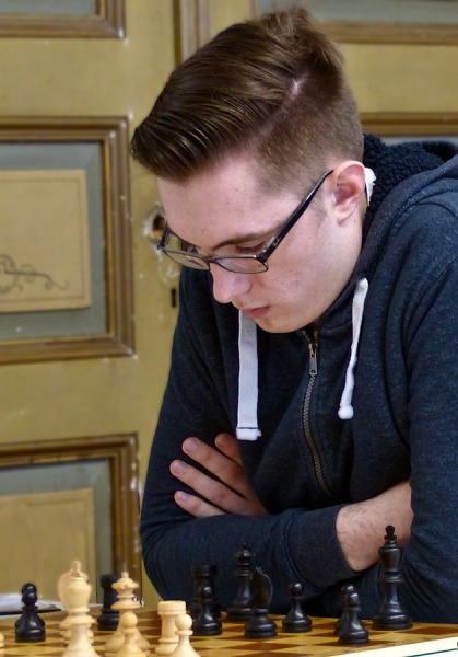 Ein perfekter Auftakt, denn an den Brettern drei und vier sah ich Timo und Lukas nominell deutlich im Vorteil. Und tatsächlich kassierte Timo, dessen König unter heftigem Beschuss der schwarzen Streitkräfte stand, seelenruhig den schwachen Bauern auf c6 ein. Als wenig später auch den schwarzen Bauern auf d5 das gleiche Schicksal ereilte, hatte er sicherlich eine Gewinnstellung erreicht. Zeitgleich stellte auch Lukas seinen Wunschgegner Heiko Kesseler, von dessen geradezu magischen Tandem-Fähigkeiten er auf der Hinfahrt begeistert berichtet hatte, vor große Probleme. Leider übersah er kurz vor der Zeitkontrolle eine Verteidigungsressource und musste wenig später in die Punkteteilung einlenken.