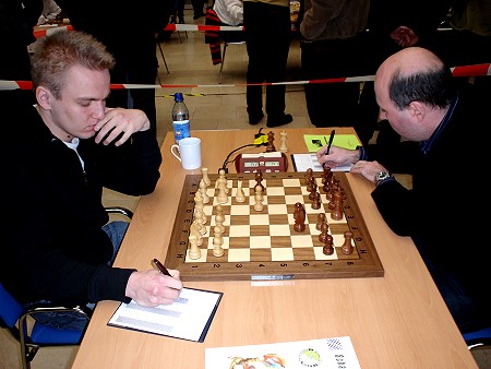 Die Niederlage gegen Baden Baden fiel deutlich aus: Igor Glek geriet gegen Etinne Bacrot schenll ins Hintertreffen, Christian Seel, Dr. Christian Scholz und Georgios Souleidis wehrten sich lange, aber letztlich vergeblich. Die spektakulärste Partie des Tages spielte Alexej Shirov gegen Vladimir Chuchelov am Spitzenbrett: Er opferte zunächst einen Läufer auf g3 und beendete die einseitige Auseinandersetzung im 41. Zug mit einem Turmopfer auf f3. Zu Remisen kamen Matthias Thesing, Sebastian Siebrecht und Nazar Firman, der in unklarer Stellung ein Remisangebot akzeptierte.