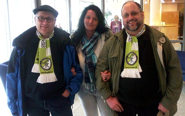 Pünktlich um 15 Uhr traf dann auch der Katernberger Fanbus ein und brachte gutgelaunte Gäste mit. Das war wirklich eine gelungene Überraschung!