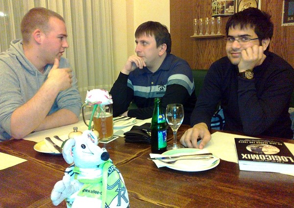- Christian, der übrigens heute im Prinzip ein Heimspiel hatte (er arbeitet als Mathematiker beim Eigentümer des Spiellokals), war etwas zerknautscht. Entschieden war aber noch nichts.