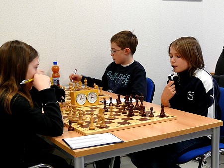 Endlich hat auch für unsere 2. Jugendmannschaft die Saison begonnen. Zum Auftakt gelang ein verdienter 5:1 Sieg gegen die 3. Mannschaft von Mülheim Nord, der allenfalls etwas zu hoch ausfiel: Zwar gewannen Anna und Lukas ihre Partien aus der Eröffnung heraus völlig verdient, aber die übrigen Katernberger hatten mit mehr oder weniger großen Schwierigkeiten zu kämpfen. Doch Cems Gegner verpasste die Möglichkeit, den schwarzen Königsflügel zu demolieren und stellte wenig später einen Turm ein. Michael verlor eine Figur, fing aber wenig später einen gegnerischen Läufer und gewann dann im Königsangriff, und Arman hatte ein Bauernendspiel trotz Mehrbauer schon zum klaren Remis vergeigt, als sein Gegners sich mit seinem König verlief und in tödlichen Zugzwang geriet. Hier die Tabelle nach dem ersten Spieltag und weitere Fotos: