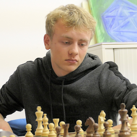 Viel früher an diesem langen Abend hatte Jan Dette für das 1:0 gesorgt. Seine deutlich aktivere Figurenstellung genügte für einen klaren Sieg. Unglücklich agierte Valentin Payes Kanders, der mit dem geschlossenen Stellungstyp überhaupt nicht zurecht kam. Als sich endlich Linien öffneten hatte er schon zwei Bauern weniger - bei der verzweifelten Suche nach Gegenspiel ging dann auch noch seine Dame verloren.