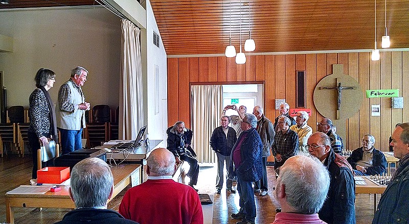 Im inzwischen vertrauten Gemeindesaal St. Bonifatius begrüßten Turnierorganisator Willy Rosen und Frau Knebel die Teilnehmer und erinnerten an das Wirken des vor 9 Jahren allzu früh verstorbenen Willi Knebel.