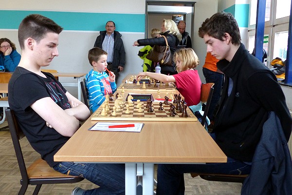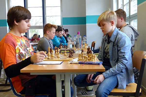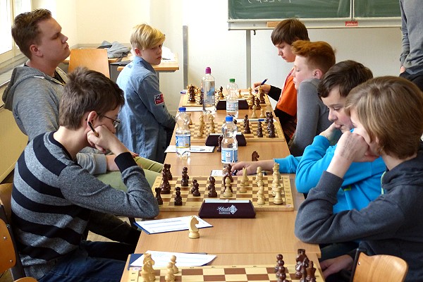 Wie im Vorjahr starten wir auch in diesem Jahr mit zwei U20 - Mannschaften in der Jugendbezirksliga. Diese spielten in der ersten Runde erwartungsgemäß gegeneinander, und ebenso erwartungsgemäß behielt SFK3 mit 5:1 klar die Oberhand. Dieses eindeutige Ergebnis täuscht aber darüber hinweg, welchen hartnäckigen Widerstand die Außenseiter leisteten. Die längste Partie dauerte 3 Stunden und endete mit einem ausgekämpften Remis zwischen Bugrahan Corak und Alexander Tipp in einem lehrreichen Endspiel. Das zweite Remis trotzte ein überraschend umsichtig agierender Marius Schimnatkowski dem erfahrenen Tim Scholten ab.