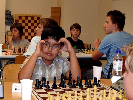 Mit einem überlegenen Sieg gegen die Gastgeber vom SC Listiger Bauer endete der Freundschaftskampf am 25.08.2009. Unsere Truppe war doch deutlich erfahrener und zum überwiegenden Teil auch älter. Gespielt wurden je zwei Partien mit 15 Minuten Bedenkzeit, aber die ersten Partien waren immer schon nach wenigen Minuten beendet. Für SFK spielten Jan Dette, Maximilian Heldt, Daniel Wasem, Tim Dette, Michel Meyer, Lukas Schimnatkowski, Anna Döpper, Cem Celik, Adrian Schiel und Deniz Celik. Deniz ist der "kleine Bruder" von Cem, beherrscht mal gerade die Schachregeln und war eigentlich nur zum Zuschauen mitgekommen. Prompt verlor er beide Partien, wodurch er sich den Spaß aber nicht verderben ließ. Für den dritten Gegentreffer zeichnete Adrian verantwortlich, der schon überwältigendes Materialübergewicht erzielt hatte, sich am Ende aber noch matt setzen ließ.