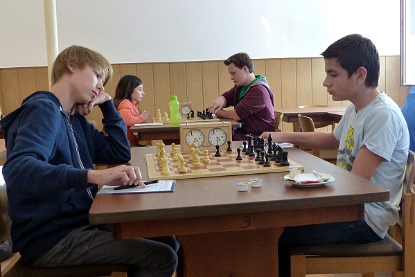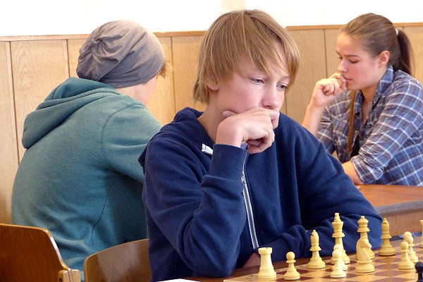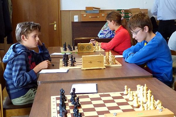 In der ersten Runde der Essener Jugendeinzelmeisterschaft konnten sich die Favoriten mehr oder weniger klar durchsetzen. Am heftigsten kämpfen musste Cem Celik, der gegen Bugrahan Corak schnell einen Turm gewann, dann aber immer mehr ins Hintertreffen geriet und trotz einer Mehrqualität zwischenzeitlich wohl glatt auf Verlust stand. Timo Küppers (kampflos), Anna Döpper und Nikita Gorainow setzten sich dagegen klar durch. In der 2. Runde treffen die Sieger aufeinander: Cem - Timo und Anna - Nikita lauten die Paarungen.