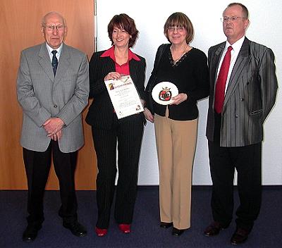 Schachenthusiasten Knebel und bedauerte, dass dieser aus gesundheitlichen Gründen die Auszeichnungen nicht persönlich entgegennehmen konnte. Stellvertretend überreichte er der Ehefrau, Elfi Knebel, die Urkunde und den Ehrenteller.