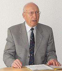 Willi Rosen überbrachte die Grüße der Teilnehmer an der 14. Ruhrgebietsmeisterschaft der Seniorinnen und Senioren und erinnerte daran, dass nicht nur dieses Turnier ein "Kind" Willi Knebels ist, sondern auch die Namensgebung des "Schachverbands Ruhrgebiet" auf seine Anregung hin erfolgte.