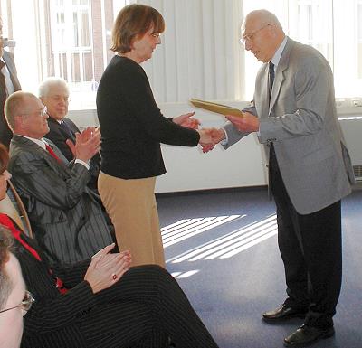 Hohe Auszeichnungen für Willi Knebel unmittelbar vor dem Beginn der letzten Doppelrunde der Schachbundesliga: Der Deutsche Schachbund (DSB) verlieh dem Kapitän der SFK-Bundesligamannschaft für seine Lebensleistung den Ehrenteller. Gleichzeitig erhielt er den Ehrenbrief und die Ehrennadel des Schachbundes NRW (SBNRW). Zahlreiche Wegbegleiter Knebels wohnten der Zeremonie bei und gaben so ihrer Verbundenheit mit dem unermüdlichen Trommler für die Sache des Schachspiels Ausdruck.