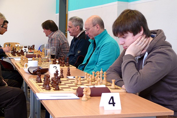 Henrik Kennemann gewann früh eine Figur. Das erlaubte seinem Vater Reinhard, Markus Kontny und Armin Gahdiri-Oghan den Remishafen anzusteuern. Leider musste Arman den Ausgleich zulassen. Aber Peter Boden eroberte eine Qualität und brachte seine Mannschaft erneut in Führung. Julian Knorr verzichtete deshalb darauf, aus seinem Läuferpaar einen ganzen Punkt herauszuquetschen, da Fridel Dicks auf einen sicheren Sieg zusteuerte. Der machte es aber unnötig spannnend, verdarb seine Gewinnstellung glücklicherweise aber nur zum Remis - es blieb beim knappen 4,5:3,5 - Sieg, mit dem unsere SECHSTE die rote Laterne abgab und das rettende Ufer wieder im Blick hat.