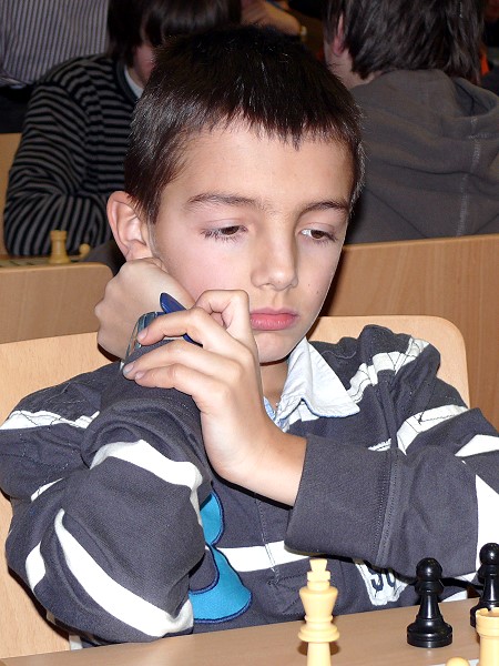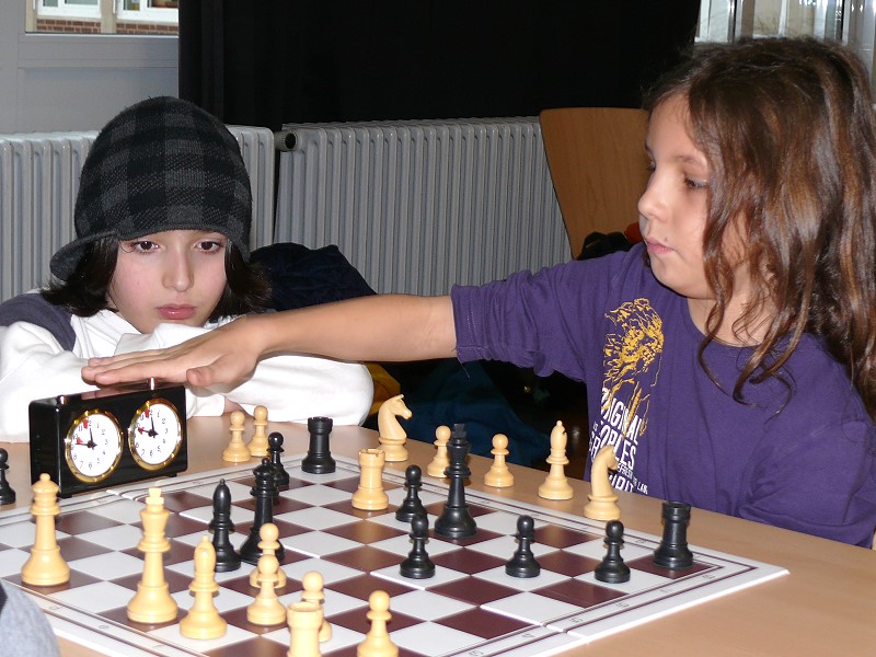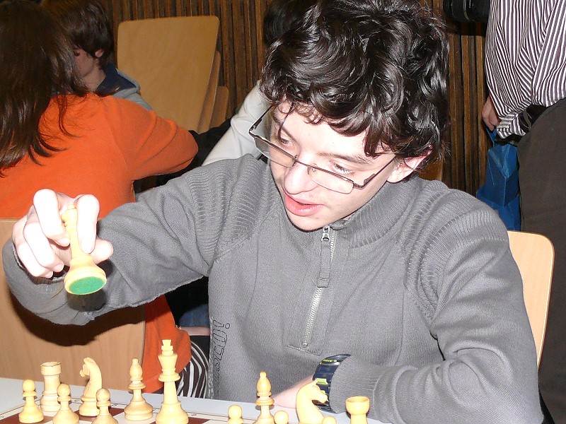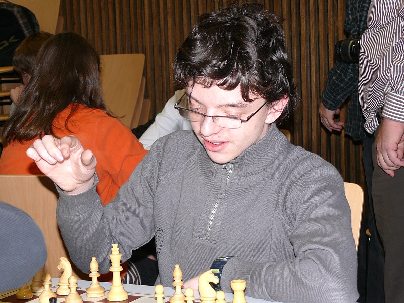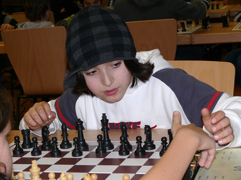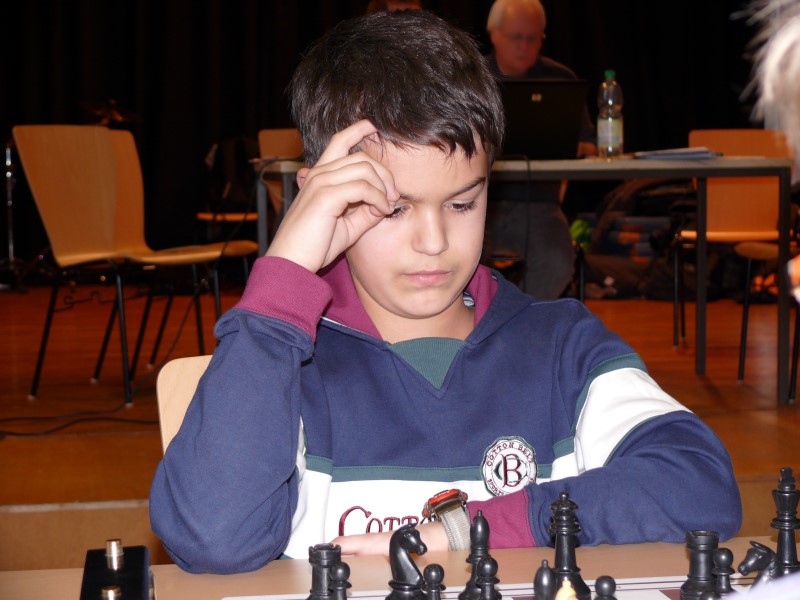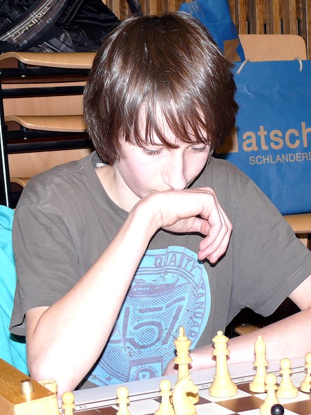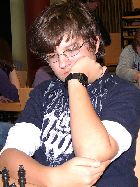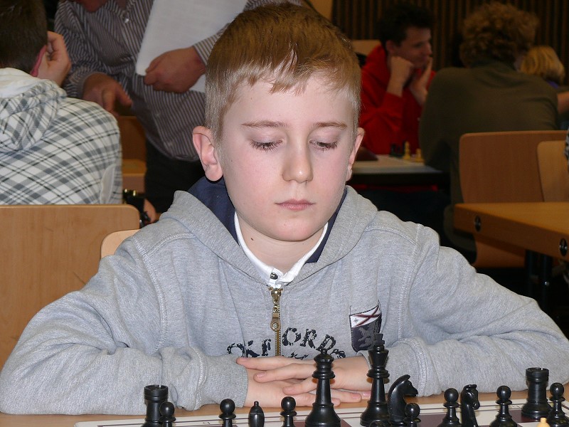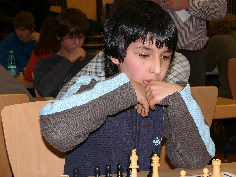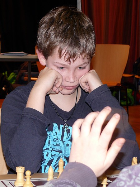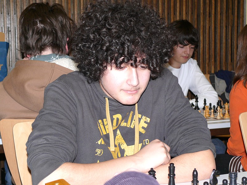 Ausgesprochen stark besetzt war die WK I (Jahrgang 1994 und jünger), wo sich neben der Leibniz-Auswahl (mit Jan Dette und André Kolbe an den Spitzenbrettern) noch das Burg-Gymnasium (mit den vier SFK-Spielern Maximilian Heldt, Michael Dohmen, Arman Marvani und Armin Ghadiri-Oghan) und die Realschule Schloss Borbeck Titelchancen ausrechneten. Gleich die erste Runde bescherte Leibniz einen hart umkämpften 2,5:1,5 Sieg gegen das Burg-Gymnasium: Das ewige Duell zwischen Maximilian und Jan endete auch diesmal unentschieden, Michael verlor gegen André auf Zeit. Nach zwei klaren Siegen kam die Mannschaft gegen Schloss Borbeck nicht über ein 2:2 Unentschieden hinaus, obwohl Jan den Essener U18-Meister Marcel Ranz in einer hochklassigen Partie bezwingen konnte: Gleichstand!