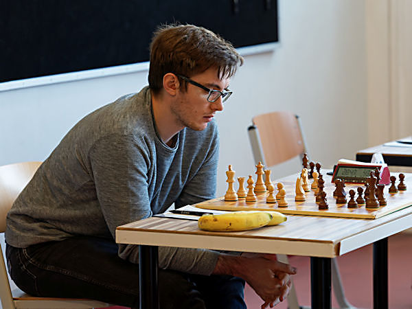 Ich wurde in der Eröffnung mit einem seltenen und mir unbekannten Abspiel konfrontiert, wo ich aber einen halbwegs stellungsgerechten Plan fand. Nach zu passivem Spiel meines Gegners erreichte ich eine Gewinnstellung und behielt auch nach einem Verzweiflungsopfer einigermaßen die Übersicht. Kurz nach der Zeitkontrolle erlaubt mein Gegner in totaler Verluststellung sogar die Mattsetzung: 2:4.