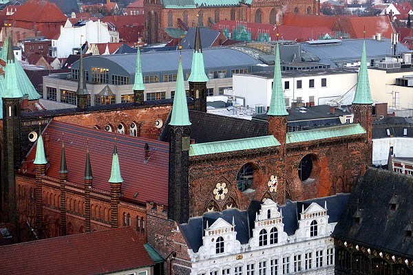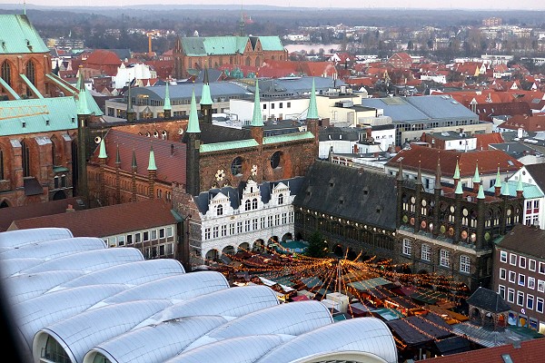 Unvermeidlicher Nachteil bei jedem Schachturnier: Von der Umgebung kriegt man praktisch nichts mit. Immerhin reichte die Zeit noch für einen Rundgang durch die Lübecker Altstadt, vom Turm der St. Petri - Kirche veraschafften wir uns dann zumindest noch einen Überblick. Für einen weiteren Turnieraufenthalt bleibt jedenfalls noch einiges zu entdecken!