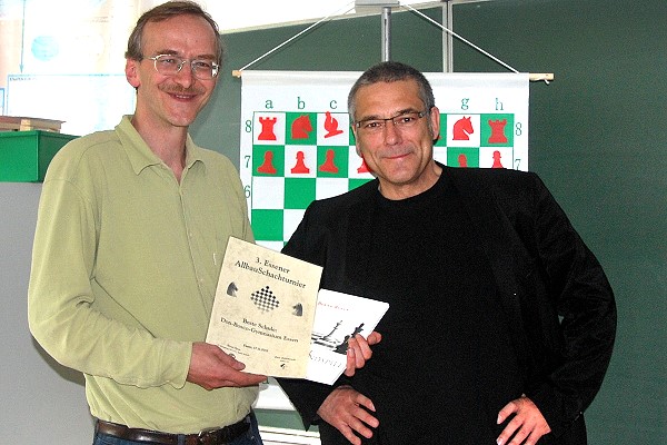 Beim AllbauSchachturnier 2012 waren die Schüler des Don-Bosco-Gymnasiums besonders erfolgreich, sie gewannen den Preis als Beste Schule und verbunden damit einen Besuch der für Katernberg spielenden Großmeisterin Sarah Hoolt. Das Schulfest des Don-Bosco-Gymnasiums am letzten Juniwochenende bot den idealen Rahmen, diesen Preis einzulösen. Für die verhinderte Großmeisterin sprang der Bundesligaspieler und A-Trainer Bernd Rosen ein, der sich den zahlreich erschienenen Schülern nach einem kurzen Trainingsvortrag zum Uhrenhandicap stellte. Zuvor jedoch überreichte er Carsten Kindermann, dem Leiter der erfolgreichen Schach-AG, eine Urkunde und ein Exemplar seines Trainingsbuchs "Fit im Endspiel".
