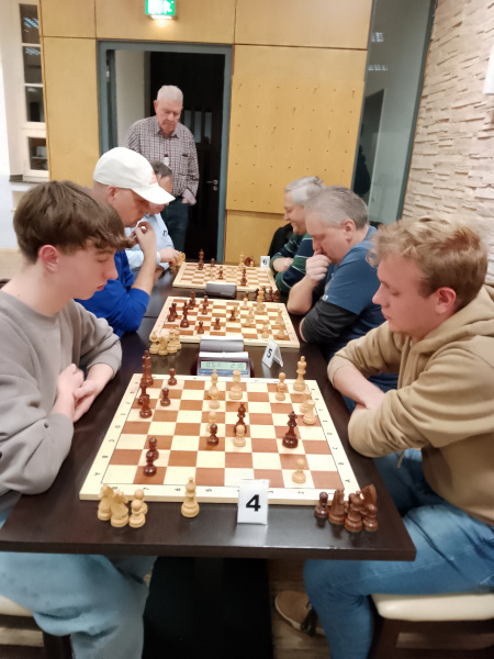 Der erste Vereinsabend im Jahr 2024 startete mit unserem traditionellen Neujahrsblitz. Letztes Jahr noch auf dem 11. Platz setzte sich Mykola Korchynskyi dieses Mal klar gegen die anderen 34 Spieler durch und gewann das Turnier deutlich mit 12,5 aus 13 Punkten. Auf dem zweiten Platz folgte Horst Sinnwell (SF Kirchhellen) vor Sven-Holger Hortolani (SW Oberhausen). Der beste U18-Spieler, abgesehen von Mykola, war Nils Berresheim auf dem vierten Platz.
