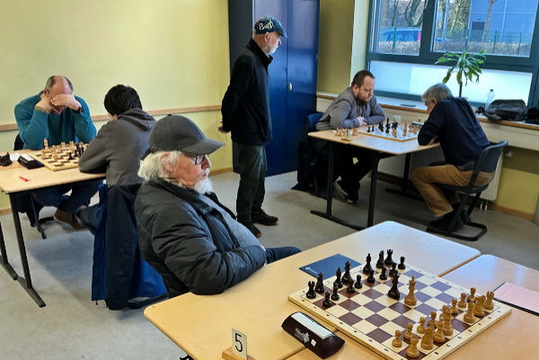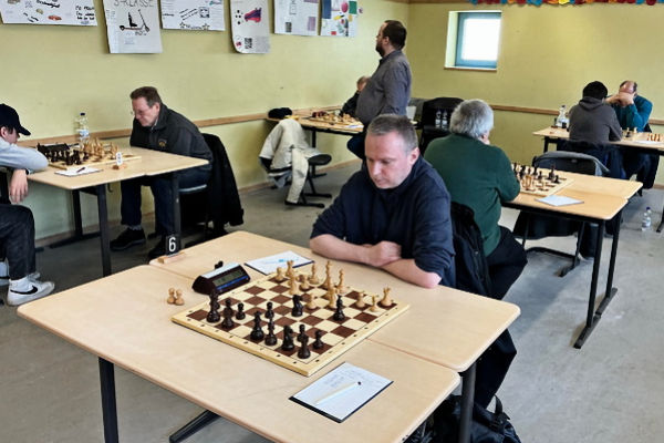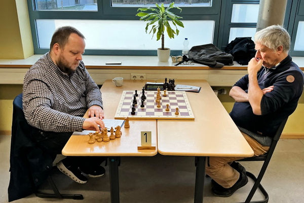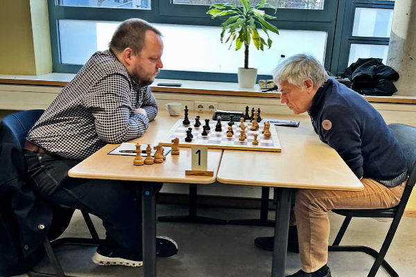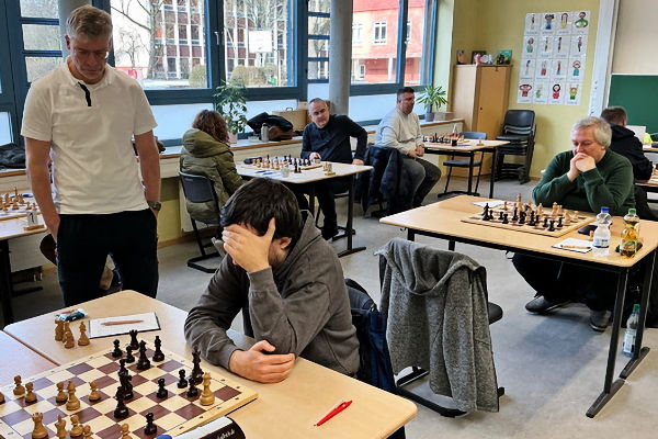 Die knappe Führung hatte auch Bestand, als Martin in Verluststellung erfolgreich auf dreimalige Stellungswiederholung reklamierte. Leider hatte ich in der Zeitnotphase in schwieriger Stellung einen Bauern eingestellt, der meinem Gegner zum Gewinn der Partie genügte. Danke an den Schiri Franz Schulze Bisping, der noch am Spieltag einige Fotos und die Notation der Partien übersandte, die Sie weiter unten nachspielen können.