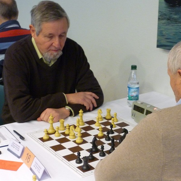 Erich Krüger startet mit 3-aus-3, gefolgt von einem schonenden Kurzremis gegen den punktgleichen Berichterstatter, also mit 3,5/4 ein sehr ordentlicher Start. Dann in der Folge (Rd. 7) leider ein Rückschlag durch eine in etwa ausgeglichener Stellung einzügig eingestellte Partie (undeckbare Mattdrohung übersehen). Durch einen Endspurt in Form von zwei kämpferischen Siegen in Runde 8 und 9 erreichte Erich mit 6,5 Punkten Platz 8 (nur einen halben Punkt hinter der Spitze) und den Titel des „Vize-Nestorenmeisters von Mecklenburg-Vorpommern 2018“. DWZ-Zuwachs +18, Elo + 11.