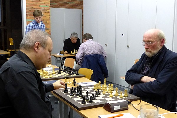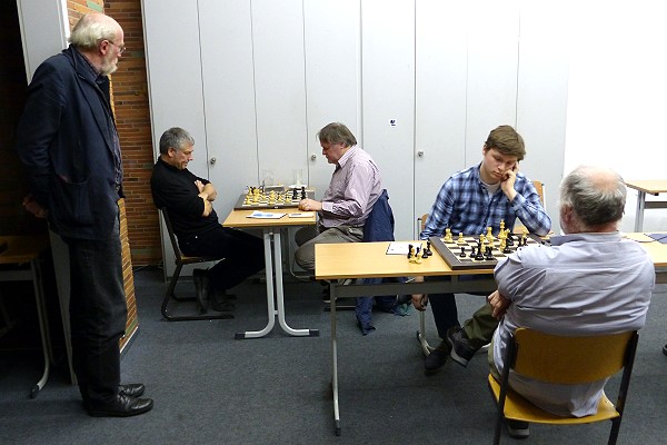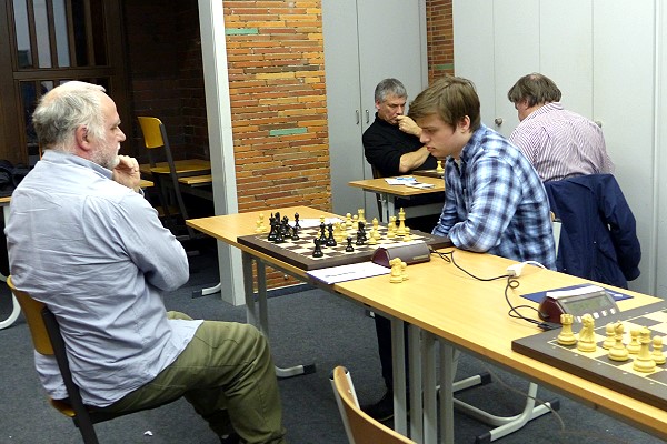 In der 2. Runde der Vereinsmeisterschaft blieben die ganz großen Sensationen aus. Julian Knorr verdarb eine aussichtsreiche Stellung gegen Günter Liszka am Ende doch noch zum Verlust. Überraschend war allenfalls, mit welcher Leichtigkeit Willy Rosen den zuletzt so erfolgreichen Timo Küppers in weniger als 20 Zügen besiegte, und dass Edgar Schmitz den höher gesetzten Bruno Müller-Clostermann in einer strategisch überlegen geführten Partie sicher bezwang. Die vier zuletzt ausgetragenen Partien wurden übrigens zu Testzwecken mit unserem Live - Übertragungssystem aufgezeichnet und stehen im Live - Portal dieser Seite zum Nachspielen zur Verfügung: SFK - VM 16/17, Runde 2.