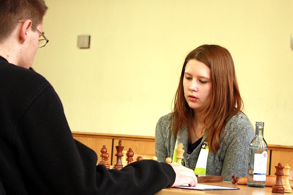 Um die Mittagszeit musste sich unser Klaus eines sehr tapferen Figurenopfers erwehren, der seinem jungen Gegner klare Angriffsoptionen am Königsflügel eröffnete. Sarah spulte derweil eine hübsche Sizilianischpartie ab. In den Partien von Sebastian und Andrei war hingegen noch nicht so viel los. Sicher, man tauschte die eine oder andere Spitze aus, aber im Grunde genommen sah es vordergründig nicht so aus, als wolle man sich wirklich weh tun. Andererseits sind es ja oft die Drohungen unter der Eisdecke, die am gefährlichsten sind.