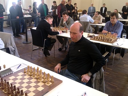All das ließ mich fast vergessen, dass in der Parallelbegegnung zwischen dem OSG Baden-Baden und unserem Reisepartner SV Mülheim Nord um höhere Weihen gespielt wurde. Dort stand des inzwischen 2,5 : 2,5; allerdings sah es momentan so aus, als ob die süddeutschen Titeljäger mit den verbleibenden Brettern nach einigen Hin und Her doch noch einen Sieg sicherstellen würden.