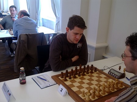 Ebenso lieferte Klaus seinem Gegner ein gleichwertiges Match. Er spielte übrigens das erste Mal eine Turnierpartie gegen den englischen GM Michael Adams. Die beiden sind sich bislang nur in Schnellschach-Turnieren über den Weg gelaufen.