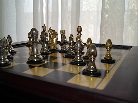 Auf dem Weg dort hin bin ich allerdings an einem recht gut besuchten Flohmarkt hängen geblieben. Da hatte es mir besonders ein kleines Edelholz-Schachkästchen mit Messing- und Zinnfiguren angetan, das ich dem Händler schließlich für kleines Geld abschwatzte.