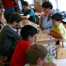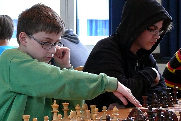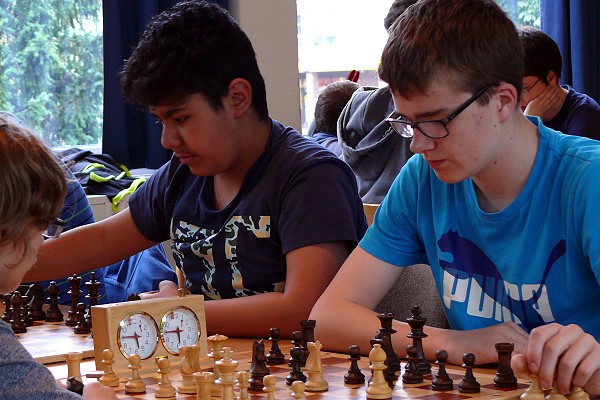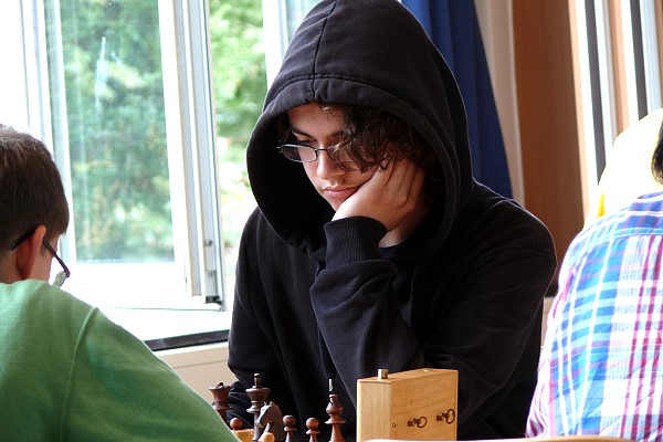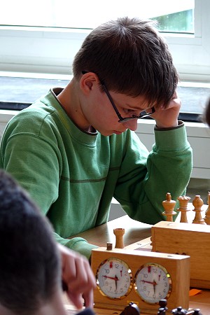 Qualitativ war das Turnier dennoch recht gut besetzt - die Punkte hingen recht hoch, wie unter anderem Jonas Jahrke im Turnier der U10/U12 erfahren musste: Er verdarb einige gute Stellungen durch Unaufmerksamkeit und spielte meist an einem der unteren Bretter. Melanie dagegen erwischte einen guten Tag und landete ganz weit vorne. Die Altersklasse U14 spielte gemeinsam mit der U16, U18 und U20. Hier erwischte Cem Celik einen Traumstart mit einem Sieg gegen den an 2 gesetzten Boris Fistoul, der rund 600 DWZ-Punkte mehr aufweist. Obwohl er dieses Niveau nicht durchhalten konnte reichte es am Ende zu 5 Punkten aus 9 Runden und dem 4. Platz in der U14. Sehr stark spielte Stefan Burkardt, der mit 4,5 Punkten Platz 6 der U14-Wertung erreichte, während sich Manuel Huiskes mit 3,5 Punkten und Rang 8 begnügen musste. Dass unsere Vertreter durchaus zufrieden mit ihrem Abschneiden sein können zeigt sich auch daran, dass mein DEM-Schützling Jan Wastian, immerhin amtierender U16-Meister des Ruhrgebiets, nur auf 5,5 Punkte kam.