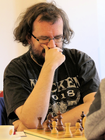 Auch Berthold hätte sich mit origineller Eröffnung und sehr zäher Gegenwehr im Endspiel und nur einem echten Schnitzer in der Partie zumindest das Remis verdient gehabt: Im 19. Zug schlug er mit dem Ld3 den abseits stehenden Sa6 statt nach b5 zu gehen. Nach dem erzwungenen 19. ... Te8-f8 20. Sf5 hat der unglücklich von Td8 und Tf8 flankierte Le7 wegen baldigem e4-e5 kein gutes Feld und die Engine zeigt bereits +3 ... Als Mannschaftsfüher wünschte ich mir hier einen Joker: 1x in der Saison Computer-Bewertungen aller Bretter addieren ergab zu diesem Zeitpunkt ein klares 4:4 Unentschieden ... und ab 16:00 einen Sonntag-Nachmittag mit Kaffee und Kuchen.