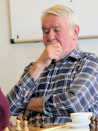 Unsere Senioren Willy, Gerd, Ralf und Erich waren gut aus der Eröffnung gekommen. Während Erich nach der Eröffnung auf Abwege geriet und seine gute Stellung bald verloren aussah, mussten sich Gerd und bald darauf auch Willy mit Remis begnügen. Als Tim in verzweifelter Lage eine Figur opfern musste, zeichnete sich die Niederlage ab. Eine starke Partie spielte Ralf Stremmel, der mit dem Läuferpaar eine starke Angriffsstellung erhielt. Leider schaffte es sein Gegner, die irgendwann sicherlich verlorene Stellung irgendwie zusammenzuhalten und schien plötzlich sogar selbst Chancen zu bekommen. Zum Glück konnten zuerst Erich nach einem Patzer seines Gegners und später auch Ralf das Remis sichern, aber Nils und Isabel mussten sich nach langer Gegenwehr geschlagen geben.