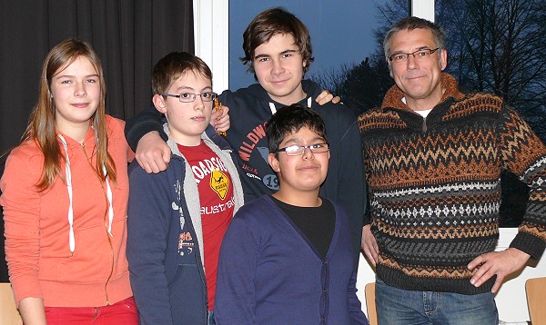 Insgesamt starteten nur drei Schulen in diesem Wettbewerb. Unter anderem fehlte mit dem Burggymnasium der vermutlich schärfste Rivale, der gleich mit fünf bis sechs SFK-Spielern hätte auflaufen können . Allerdings hatte auch das Maria-Wächtler-Gymnasium eine starke Truppe aufgeboten, in der mit Henrik Kennemann, Julian Knorr und Alexander Hollweg ebenfalls drei Katernberger das Herzstück bildeten. Diese besiegten das Theodor-Heuss-Gymnasium aus Essen-Kettwig in der ersten Runde denn auch klar mit 3,5:0,5.