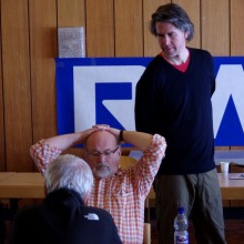 Von vielen (hochkonzentrierten) Teilnehmern unbemerkt verlief der Besuch von Großmeister Sebastian Siebrecht, der sich als Edelkiebitz bei einem Rundgang entlang der Bretter einen Eindruck vor Ort verschaffte. Die Bildergalerie liefert aber einen Fotobeweis für seine Anwesenheit!