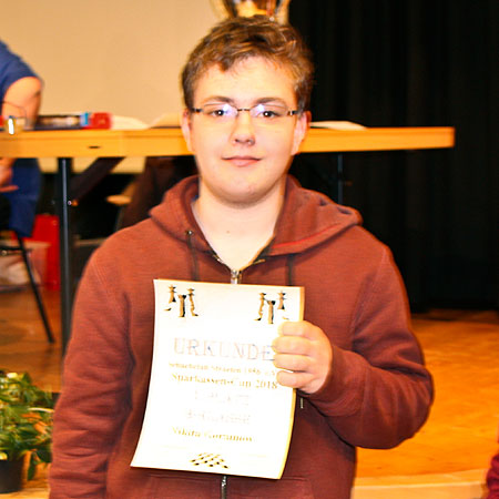 Wie immer waren unsere Jugendspieler das Rückgrat des Erfolges: Nils Berresheim siegte in der U10, Noel Gallas in der U14, Lasse Struck in der U16 (und das bei seinem ersten größeren Turnier überhaupt!!). In der Gruppe C schnappte unser Davit Mamikonyan dem mit 5 Siegen perfekt gestarteten Jonas Jahrke den Turniersieg auf der Zielgeraden noch weg. Auf's Podest kamen auch Alexander Tipp und Nikita Gorainow. Gern hätten wir uns noch den Seniorensieger Karl-Heinz Hüttemann als "Edelkaternberger" anrechnen lassen, aber der lief hier natürlich unter dem Label des Dortmunder SV. Alle Einzelergebnisse lassen sich in einigen Tagen sicher auf der Turnierseite nachlesen, hier vorab schon mal ein kleiner Bilderbogen: