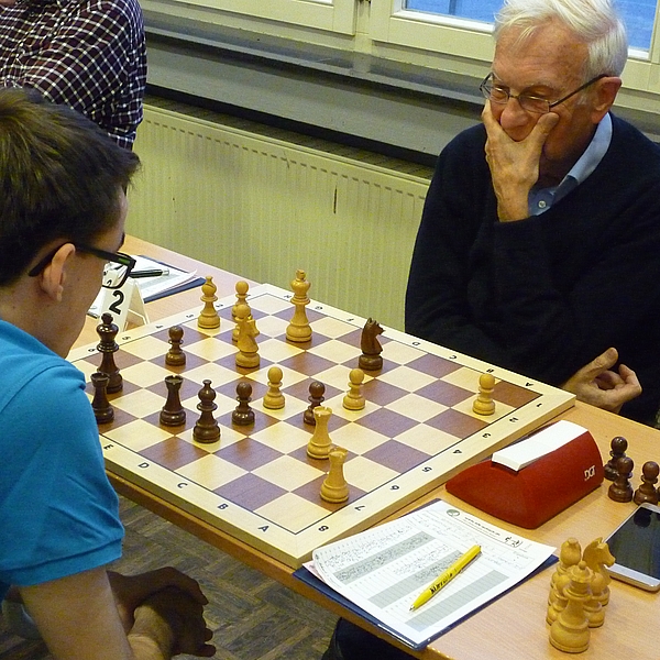 Nach über 5 ½ Stunden Spieldauer brachte Bernd den Punkt souverän nach Hause, Bruno konnte seinen Materialvorteil leider nicht verwerten, also Remis (nach 76 Zügen) und 4:3 für uns bei bereits absehbarem Sieg von Erich, der letzten Endes mit offensivem König seine Freibauern gegen einen hilflosen Turm vorantreiben konnte.