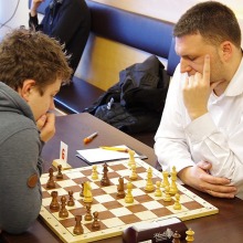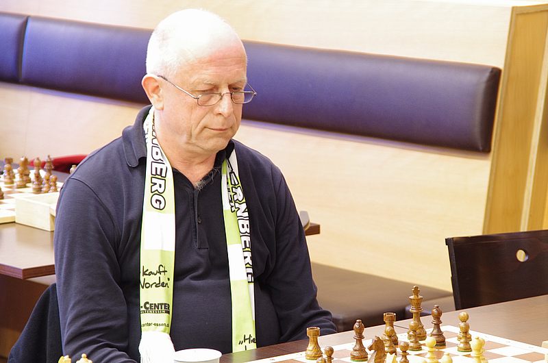 Danach folgten drei ausgekämpfte Remispartien von Max Heldt, Bernd Sauer und Jürgen Kraft. Max hatte gegen den starken Holger Heimsoth in einem Endspiel T+S gegen T+L eine hoffnungsvolle Initiative, musste aber am Ende in ein Remis einwilligen. Bernd – eigens aus Polen zu diesem Mannschaftskampf angereist! - hatte ein leicht vorteilhaftes Endspiel, das nach Übergang in ein reines Bauernendspiel zu einem sofortigen Remisschluss führte. Jürgen, der nach eigener Aussage das Glück hatte, an zwei Sonntagen hintereinander und erfolgreich einmal gegen den Abstieg (mit SFK 5) und anschließend um den Aufstieg mitzuspielen, hielt nach "mikroskopischen Vorteilen" ein sicheres Schwarzremis. Zwischenstand nach 6 Partien 4,0:2,0. Jürgen hat überdies angekündigt seinen Kontakt mit der Schachgöttin Caissa zu intensivieren. Wir werden das anstehende Turnier auf Kos beobachten und mitfiebern!