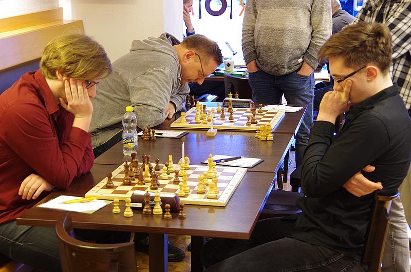 Es liefen noch die beiden sehr gut stehenden Partien von Edgar Schmitz (mit Weiß an Brett 3) und Josua Kudelka (mit Schwarz an Brett 4).