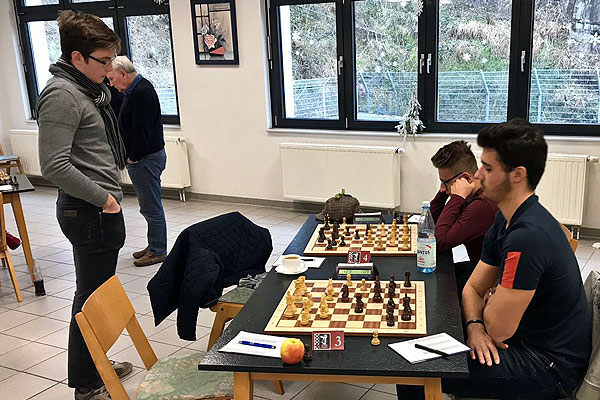 Luca schaffte es nach dem Fehlstart in die Partie, seinem Gegner stets neue Probleme zu stellen, so dass dieser keinen klaren Weg zum Sieg fand. So wurde der weiße Vorteil nach und nach kleiner. Letzten Endes konnte Luca fdann in ein Läuferendspiel mit gleichen Bauern abwickeln, das mit einem Remis endete. Ein starke Verteidiungsleistung! 2:1