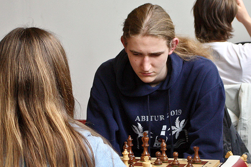 Im Großen und Ganzen entsprach dieses Ergebnis auch den DWZ-Erwartungen: Anna und Cem würden gegen ihre nominell stärkeren Gegner einen schweren Stand haben, zumal beiden die Spielpraxis fehlt. Dafür besaßen wir hinten leichte bis deutliche DWZ-Vorteile - am deutlichesten bei Lasse, der denn auch nach einer knappen Stunde für die 1:0 Führung sorgte: In einem Sizilianer entschied sich sein Gegner in etwas unbequemer Stellung für die lange Rochade. Eine Entscheidung, die nicht anders als suizidal zu bezeichnen ist, was Lasse mit wenigen überzeugenden Zügen nachwies. Kurz vor dem unabwendbaren Matt gab sein Gegner auf. Isabel geriet in der Eröffnung in Schwierigkeiten, konnte sich aber herausarbeiten und gewann dann ein vermutlich nur gleich stehendes Endspiel. Auch Cems König geriet am Damenflügel in Schwierigkeiten, und dies zudem bei einem Minusbauern. Obwohl Schwarz den sofortigen Knockout mit einem naheliegenden Springeropfer auf b3 verpasste, konnte Cem sich doch nicht halten: 2:1. Anna war am Spitzenbrett in eine typische schlechte Französisch-Stellung mit dem schlechten Damenläufer geraten, auch ihr halfen weder Zähigkeit noch ein Verzweiflungsangriff durch g7-g5 - am Ende siegte Weiß und Mülheim glich aus zum 2:2.