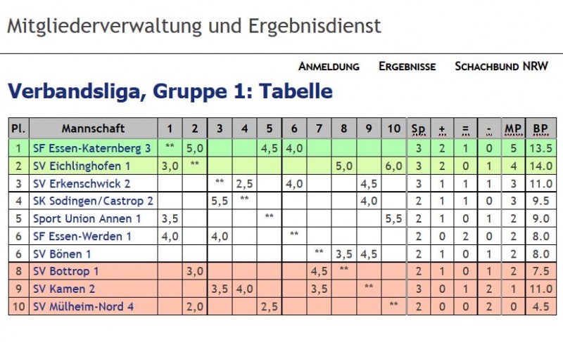 Nach 4,0 Brettpunkten gegen Werden, 4,5 gegen Annen, 5,0 gegen Eichlinghofen, wollen wir uns gegen den SV Bönen auf 5,5 steigern. Die Runde 4 - für uns wieder ein vorgezogener Termin - findet am 26.11.2017, 14 Uhr, in der Zeche Helene statt.