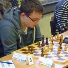Dann gab es noch die beiden Weißpartien von Josua Kudelka (Brett 4), der in der vierten Stunde eine vermutliche Gewinnstellung erreicht hatte, aber schließlich doch ein Dauerschach zulassen musste, und die von Bernd Sauer (Brett 6), der kurz zuvor gegen einen zäh verteidigenden Königsinder nach reichlicher Überlegung ein Remisangebot annahm. In Anbetracht des inzwischen hoffnungsvoll stehendem Kampfes eine richtige Entscheidung. Neuer Stand 3:3.