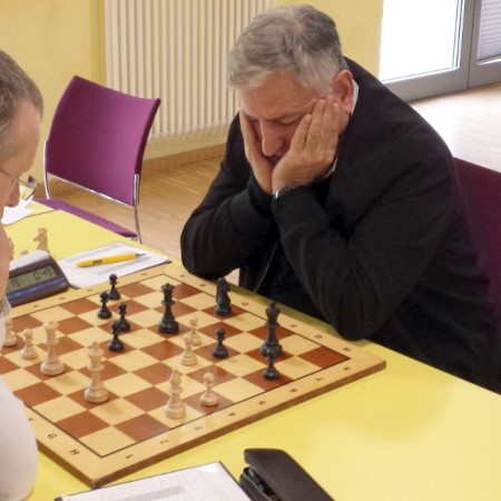 Günter Liszka beendete seine Partie zügig an Brett 3 mit einem Remis, bevor Stefan Zell, der durch eine Unachtsamkeit seines Gegners Qualität und Bauer gewann, den ersten Punkt für uns holte.