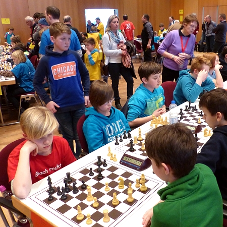 Erstmals richtete die Schachjugend NRW die Landesmeisterschaften in einer zentralen Endrunde aus, für die sich die jeweiligen Bezirks- und Kreismeister qualifizierten. Eine Großveranstaltung mit 5 parallel laufenden Turnieren, an denen insgesamt 143 Schulen mit rund 650 Spielern teilnahmen. Wegen der grassierenden Grippewelle mussten einige Schulen kurzfristig absagen, sonst hätten es sogar bis zu 1000 Spieler werden können. Eine Mammutaufgabe, die von der Schachjugend NRW mit zahlreichen ehrenamtlichen Helfern souverän gemeistert wurde. Eine harte Prüfung aber auch für die SchülerInnen: Die Siegerehrung endete gegen 18:30 Uhr, erst danach konnten wir die Rückreise von Kamen antreten.
