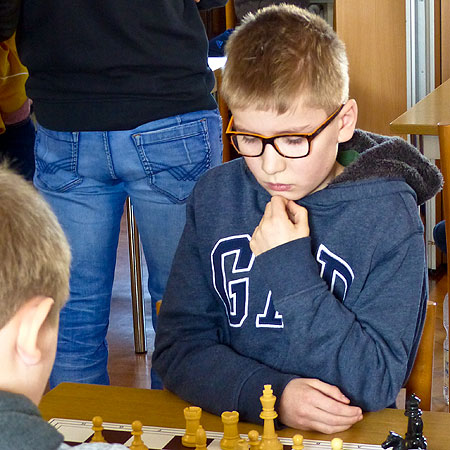 Ein gut gelauntes SFK-Quartett nahm bei der Ruhrgebietsmeisterschaft in Oer-Erkenschwick den Kampf mit den Konkurrenten um Punkte, Medaillen und vor allem die Qualifikation zur NRW-Meisterschaft auf. Die besten Chancen besaß dabei Nils, der an 5 gesetzt war, aber auch Sam rechnete sich Chancen aus, nachdem er im Vorjahr mit etwas Glück als Vierter der U10 das begehrte Ticket nach Kranenburg gelöst hatte. Für Jonathan und Konstantin ging es sicher ehr darum, weitere Erfahrung zu sammeln.
