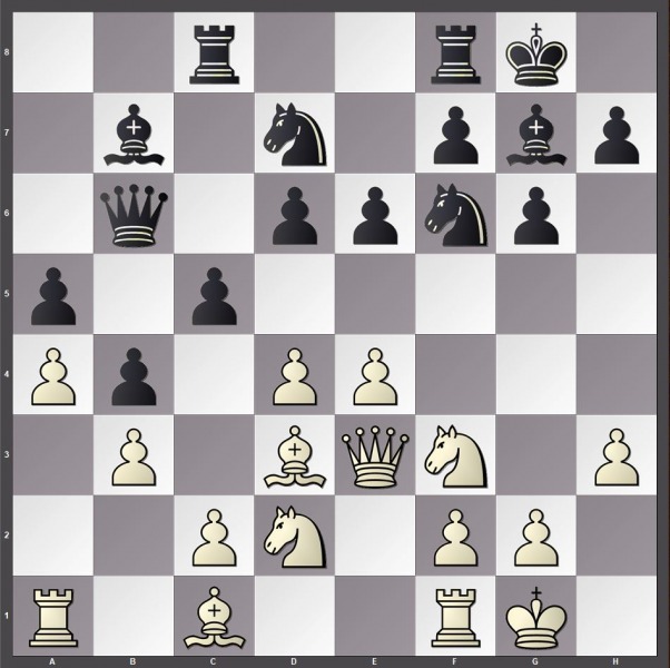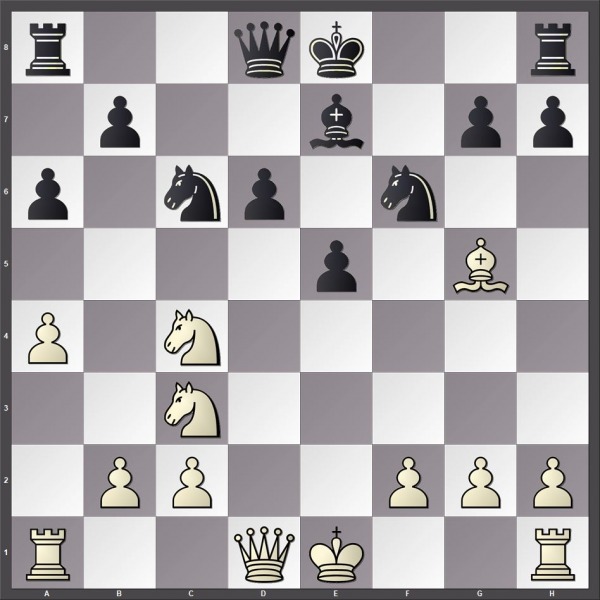 Hiernach hat Weiß klaren Vorteil, weil Schwarz die wichtigen Zentrumsfelder e4 und d5 verliert. Durch den drohenden Tausch Lg5-Sf6 verliert Schwarz die Kontrolle über die weißen Felder. Nach 14...0-0?! (Die kritische Variante ist natürlich 14...d5, aber ich glaube, dass Weiß nach 15.Lxf6 dxc4 16.Lxe7 Dxe7 17.Dh5 g6 18.Dg4 klaren Vorteil hat.) folgte 15.Lxf6! Txf6 und hier hätte das simple 16.Sd5 Weiß konstanten Vorteil gegeben. Die schwarze Stellung wäre durch die weißen Springer langfristig blockiert und Weiß könnte problemlos 0-0 und c3 folgen lassen, während Schwarz nur zuschauen könnte. Weiß verstärkt seine Stellung nach und nach und meines Erachtens ist die schwarze Stellung nach 16.Sd5 hoffnungslos. Die Partie ging allerdings sehr zweischneidig mit 16.Se4? Tg6? (16...Tf4 hätte auf einmal Schwarz Vorteil gegeben) 17.Dd5+ Kh8 18.Td1? Sb4! weiter, wonach die Sachlage längst nicht mehr so klar ist. Ich denke, Lasse hat diese Stellung zu konkret behandelt und daher nie eine wirksame Blockadestellung gegen das schwarze Zentrum errichten können. Die Partie endete nach beiderseitigen Fehlern vielleicht gerechterweise in einem Remis durch Dauerschach, da Schwarz zwischendurch auch hätte gewinnen können.