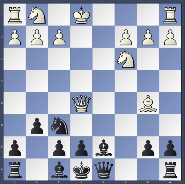 Ist man hier als Schwarzspieler unvorsichtig und spielt bedenkenlos 10...Lg7? so folgt 11.0-0-0! und nach 11...0-0 12.Lxd7 Sxd7 Db5! mit Figurengewinn. Aber Thomas setzte souverän mit 10...Lc6 fort, wonach er die Entwicklung ungehindert beenden konnte. Der beste Zug dürfte überdies 10...a6! gewesen sein und nach 11.Lxd7+ Dxd7 12.Td1 Df5 erzwünge Schwarz den Damentausch, wonach Weiß jegliche Chancen auf Vorteil verwirkt hätte. Im Gegenteil, das Endspiel ist besser für Schwarz. Doch auch die Partie hatte noch einiges zu bieten, allerdings beendete Thomas Gegner die Spannung mit einem unsinnigen Figurenopfer, sodass es wenige Züge später auch hier einen Sieg für SFK zu vermelden gab.
