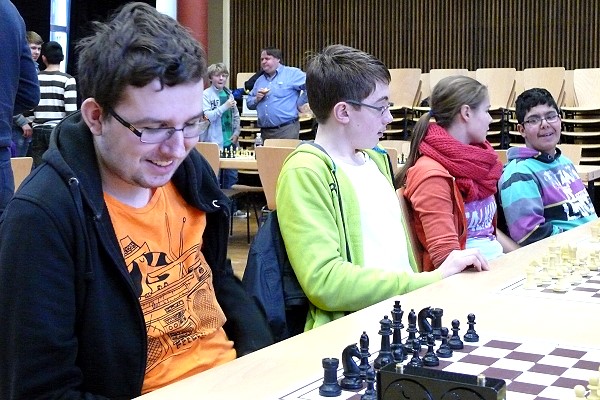 Seriensieger Leibniz wurde auch bei der Stadtmeisterschaft dieses Jahres seiner Favoritenstellung gerecht und profitierte dabei einmal mehr von der Spielstärke der Katernberger Jugend: Die lupenreine Vereinsauswahl, bestehend aus Tim Dette, Lukas Schimnatkowski, Anna Döpper und Cem Celik dominierte das Turnier mit 8:0 Mannschafts- und 16:0 Brettpunkten. Das Maria-Wächtler-Gymnasium (mit Henrik Kennemann, Julian Knorr und Alexander Hollweg) konnte zwar die übrigen Kämpfe klar gewinnen, unterlag aber im direkten Vergleich mit 0:4 und landete somit auf Rang 2 (6:2 Mannschaftspunkte).
