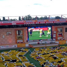 Danach machte ich mich dann zu Fuß auf dem Weg zum Stadion. Ich hatte gehört, dass diese Anlage vor Kurzem mit hohem ehrenamtlichem Engagement renoviert wurde. Ich war gespannt und wurde nicht enttäuscht. Die Fans haben hier in Eigenleistung viel erreicht. Ein tolles Ambiente. Im Moment stehen im Innenraum einige hundert Sofas, auf denen die Vereinsmitglieder auf einem Großraumbildschirm die Fußballweltmeisterschaft genießen. So nach dem Motto: Mein Stadion ist mein Wohnzimmer. Eine geniale Idee!