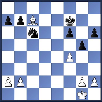 Auch Arman nutzte die unverhoffte Chance zu einem Endspielsieg nicht: In der abgebildeten Stellung konnte er nach dem schlimmen Fehler f5? den Bauern f5 beginnend mit dem einfachen h5 gewinnen. Statt dessen folgte Sd4 mit baldigem Remis.