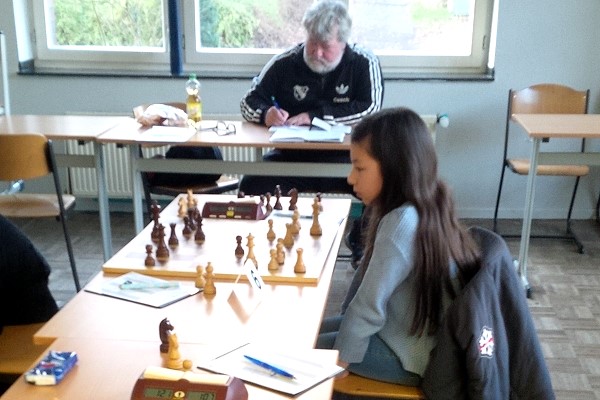 Tim hatte nach einem strategischen verfehlten Bauerntausch einen schrecklichen rückständigen Bauern auf der d-Linie, verteidigte sich jedoch zunächst gut. Julian (Moderne Verteidigung) und Arman (französischen Abtauschvariante) standen sicher. Anna hatte an Brett 1 gegen den sehr starken Steven Baerwolf (2161) ein schwerblütiges Tschechisches Benoni auf dem Brett. Ich ging daher nach einer Stunde von einer 2:4 Niederlage aus, doch leider führten im weiteren Verlauf zu viele Fehler zu einer höheren Niederlage.