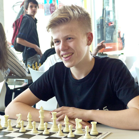 Das lag schon eher daran, dass seine Vorderleute Jonas, Isabel und Luca ihre Nervosität von Anfang an nicht ablegen konnten und durchweg unter ihren Möglichkeiten blieben. Das zeigte sich schon in den ersten beiden Runden, als deutlich schwächere Mannschaften nur mit einigem Glück besiegt werden konnten. Den vielleicht besten Kampf zeigte die Mannschaft dann gegen den Favoriten Porz, aber Luca und Jonas verdarben ihre guten Stellungen, so dass nur Remisen von Luca und Nils heraussprangen.